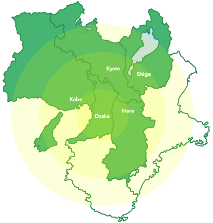 大阪・京都・神戸など、関西一円のエリアに柔軟に対応いたします。